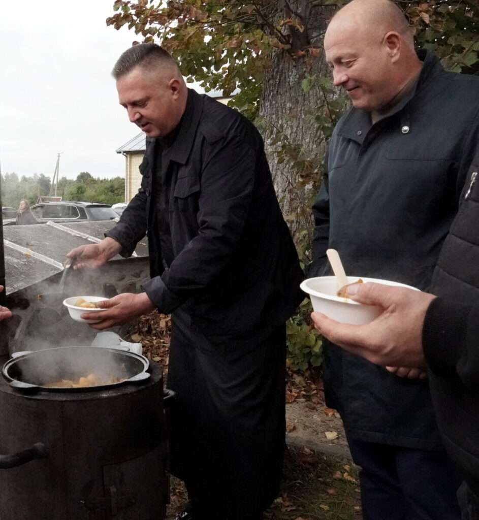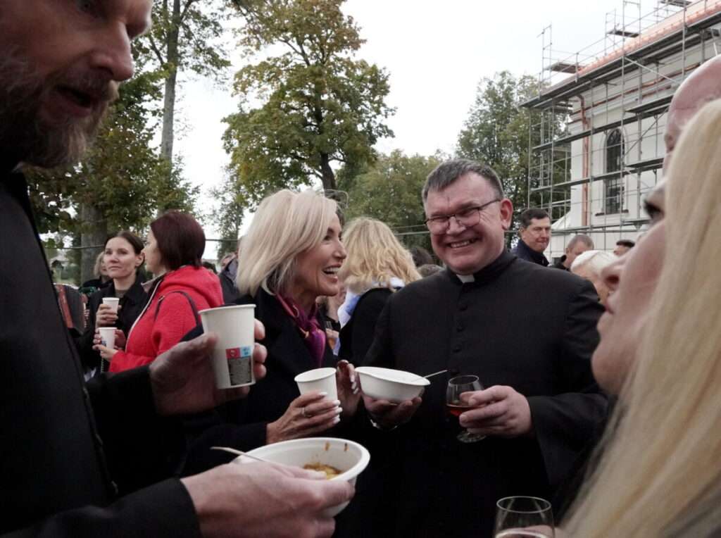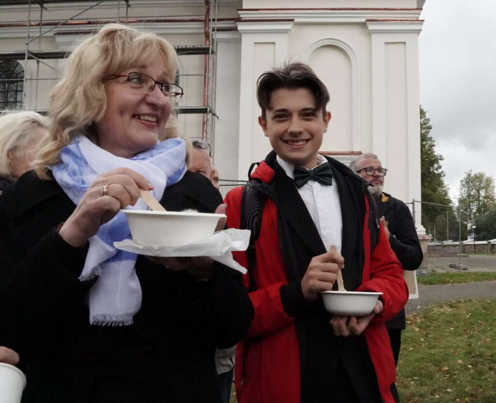 Po iškilmingų šv. Mišių bendruomenė neskubėjo skirstytis – šventinis bendravimas tęsėsi agapėje. Susirinkusieji vaišinosi pačių pagamintais skanėstais.
