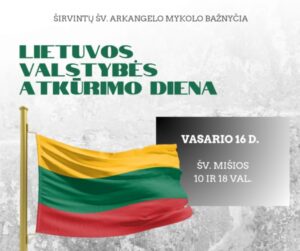 Mieli parapijiečiai bei mūsų miesto svečiai! Vasario 16-oji – Lietuvos valstybės atkūrimo diena, mūsų laisvės ir vienybės šventė. Kviečiame šią iškilią dieną pradėti ir užbaigti su malda, dėkojant už Lietuvos